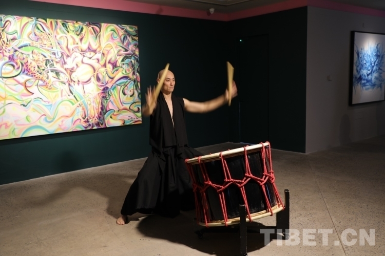 中國西藏網(wǎng)訊 1月14日,藝術(shù)家DUMA個(gè)展“豹變(FACE/OFF)”于北京觹堂文化智庫一蓮藝術(shù)空間正式開幕,開幕式以傳統(tǒng)大鼓《歡快的吶喊》開場。