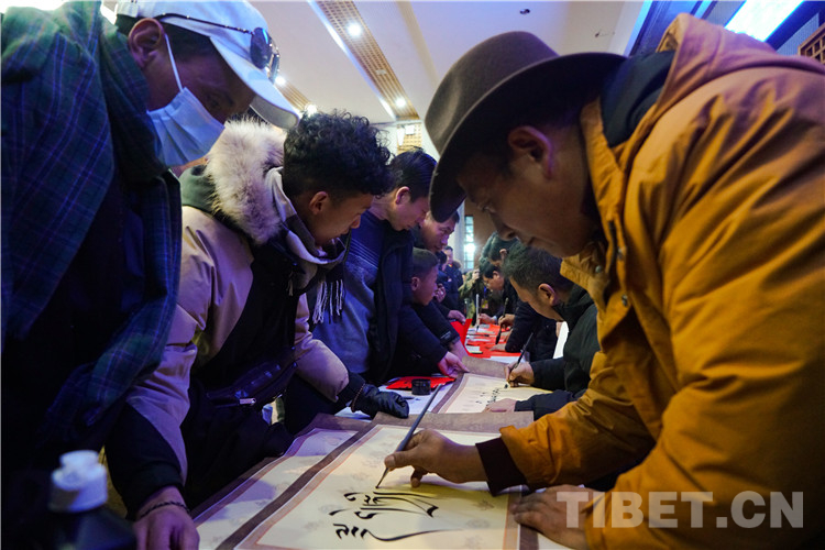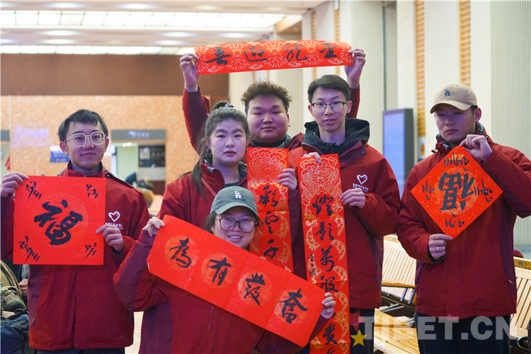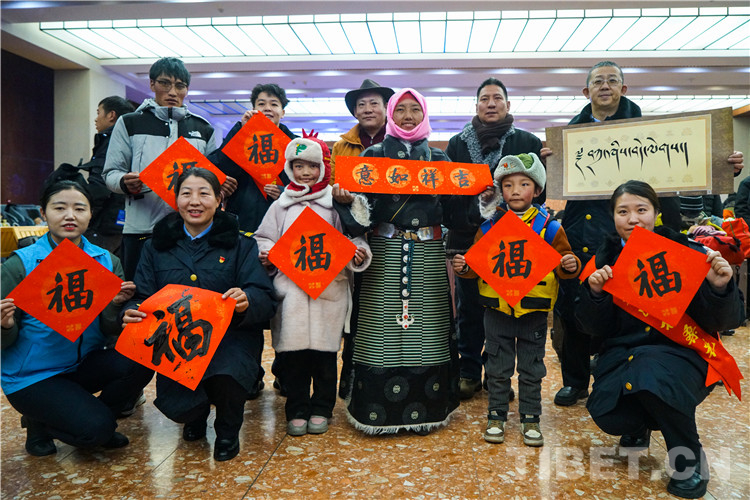 圖為春運首日拉薩站向旅客免費贈送漢藏春聯(lián)及書法作品 攝影:趙振宇