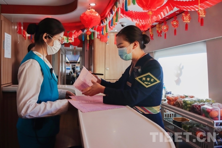 “由于春運(yùn)期間旅客人數(shù)的增多,為滿足高原群眾出行需要,拉日鐵路加開了多趟臨客列車,我今天所值乘的C921次就是其中之一,列車到達(dá)日喀則后會(huì)立即變更為C922次返回拉薩。”列車長周晶今天將值乘4趟列車,在拉薩和日喀則間往返2個(gè)來回,行程共計(jì)1000余公里,從早上8點(diǎn)上車準(zhǔn)備到20:50返回拉薩休息,周晶一天的工作有將近12個(gè)小時(shí)都是在列車上度過的,一日三餐都在列車上解決,一天下來光在列車上就要走將近2萬步。