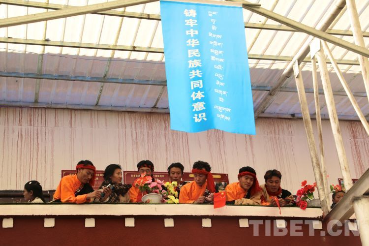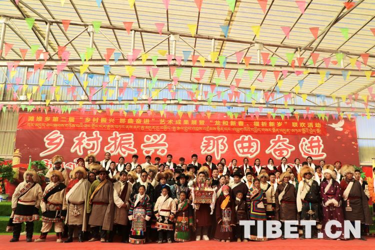 中國西藏網(wǎng)訊 2月10日,中國西藏信息中心“新春走基層”青藏線采訪組一行,來到西藏自治區(qū)那曲市安多縣灘堆鄉(xiāng),適逢當(dāng)?shù)卦谂e辦灘堆鄉(xiāng)第二屆“鄉(xiāng)村振興 那曲奮進(jìn)”藝術(shù)成果展暨“龍和新春、福祈新歲”聯(lián)歡活動。采訪組一行來到鄉(xiāng)政府對面的灘堆鄉(xiāng)文化站,記者在現(xiàn)場看到許多穿著具有當(dāng)?shù)孛褡逄厣椀娜嗽诖司奂?。在好奇心的?qū)使下,經(jīng)詢問當(dāng)?shù)馗刹坎胖?,為喜?024春節(jié)和藏歷新年,感激黨和國家的關(guān)心關(guān)懷,歌頌如今來之不易的幸福生活,鄉(xiāng)村文藝隊(duì)特此精心準(zhǔn)備了文藝節(jié)目,以嶄新的面貌和昂揚(yáng)的精神展現(xiàn)新時代牧民群眾的精神風(fēng)貌和幸福生活。