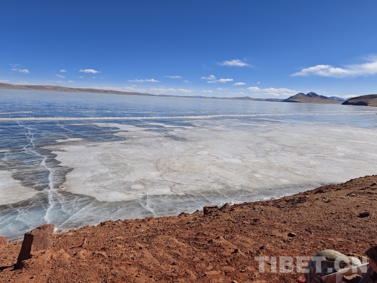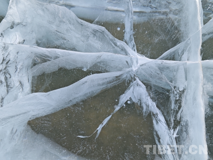 錯(cuò)那湖湖面海拔4600米左右,面積400多平方公里,是世界上海拔最高的淡水湖,更有冰泡、冰裂、冰推等奇妙的自然景觀。當(dāng)氣溫急劇下降時(shí),水溫也驟降,湖底產(chǎn)生的氣體在上升過(guò)程中被凍在冰中,形成許多細(xì)小的白色氣泡,懸浮在厚厚的冰層之中。湖水表面一層被藏北的朔風(fēng)快速凍結(jié)成冰,部分碎冰在岸邊堆積,形成隆起的“冰岸線”。又由于初春晝夜溫差較大,湖冰崩裂,形成網(wǎng)狀的冰裂紋路。這些透明裂紋從岸邊開(kāi)始,像潮水一樣漫過(guò)平地,漫過(guò)羌塘草原腹地,漫到天邊,把羌塘大地裝扮成一個(gè)冰晶縱橫交錯(cuò)的世界。(中國(guó)西藏網(wǎng) 文/李一凡 張萌萌 龍真多吉)