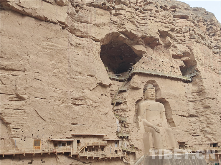 圖為炳靈寺石窟,位于永靖縣積石山的大寺溝西側(cè)崖壁上,開鑿于西晉初年,正式建立于西秦建弘元年,2014年6月,炳靈寺石窟成功列入《世界遺產(chǎn)名錄》。攝影:桑吉