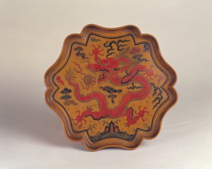 圖為填漆戧金云龍紋葵瓣式盤(pán) 圖片來(lái)源:故宮博物院