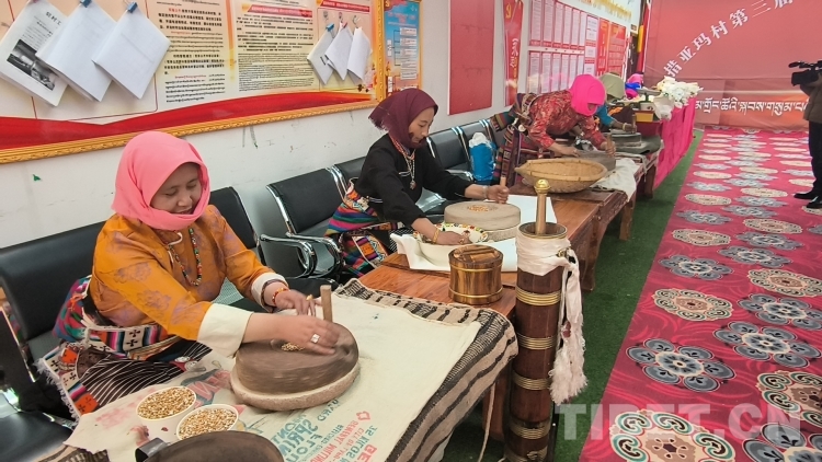 圖為手工磨糌粑比賽現(xiàn)場(chǎng)