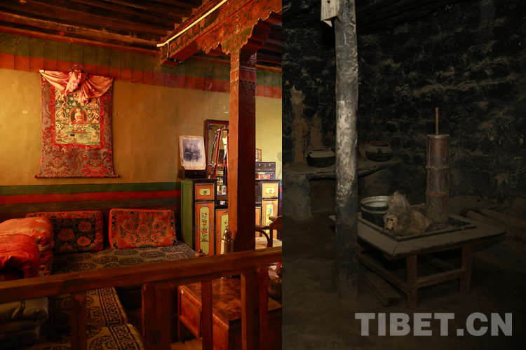 拼版資料圖:左側(cè)為西藏日喀則江孜帕拉莊園內(nèi)莊園主人的房間內(nèi)飾,右側(cè)為帕拉莊園農(nóng)奴的住所內(nèi)部 攝影:姚浩然