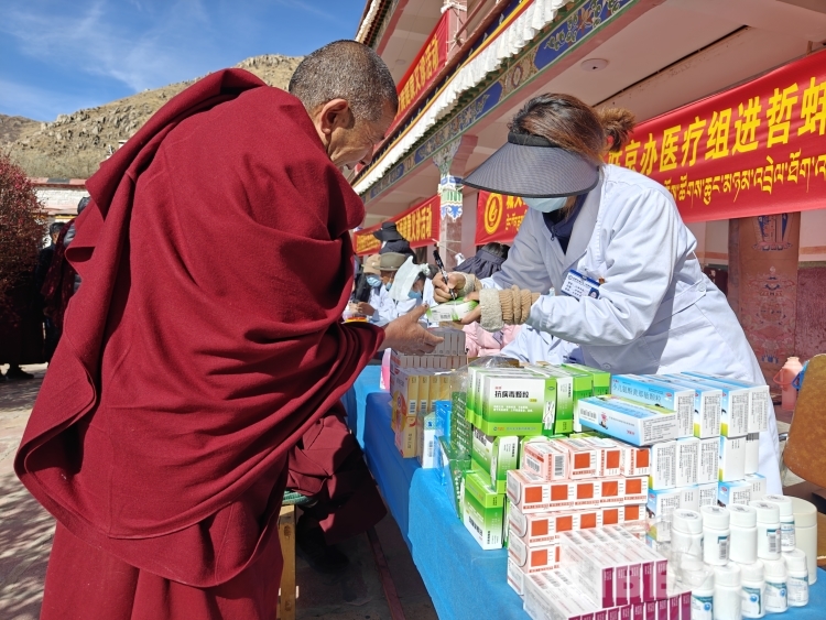 中國(guó)西藏網(wǎng)訊 “收到今天有北京醫(yī)療專家過(guò)來(lái)義診的消息,我一大早就過(guò)來(lái)了。身體平時(shí)沒(méi)什么大的毛病,就想著借此機(jī)會(huì)檢查一下,畢竟年紀(jì)大了。”66歲的哲蚌寺僧人加參高興地說(shuō)。為了讓哲蚌寺僧人和周邊民眾在家門口就能享受到優(yōu)質(zhì)的醫(yī)療服務(wù),傳播健康生活理念,提高健康意識(shí),3月29日,西藏自治區(qū)人民政府駐北京辦事處(以下簡(jiǎn)稱:京辦)組織北京11家重點(diǎn)醫(yī)院的12名醫(yī)療專家走進(jìn)位于拉薩市城西的哲蚌寺,開展“踔厲奮發(fā)擔(dān)使命 送醫(yī)進(jìn)藏暖民心”義診活動(dòng),得到僧人和群眾的一致稱贊。