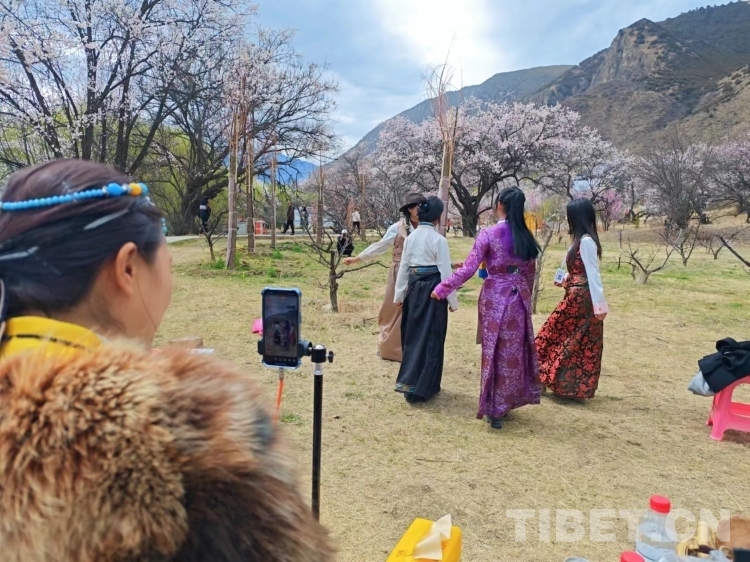 在嘎拉村桃花源內(nèi)、民族文化體驗區(qū)、產(chǎn)品展銷點……都能看到林芝市職業(yè)技術學校學生們的身影。學生們走進桃花林,以藍天白云、皚皚雪山為背景,通過直播帶全國各地的網(wǎng)友們云游林芝“桃花第一村”,展示著桃花灼灼盛開的美景。他們生動的解說和精彩的直播吸引了大量觀眾“云游林芝 云賞桃花”,體驗不一樣的桃源春色。
