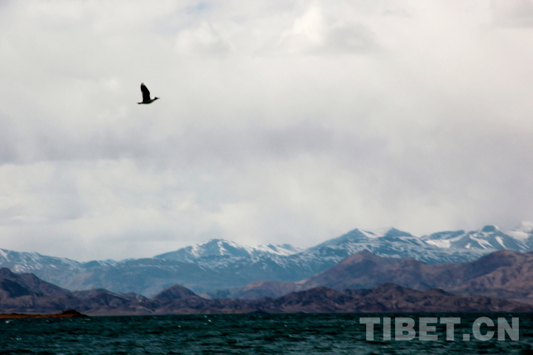 圖為翱翔在班公湖上的棕頭鷗 攝影:劉莉