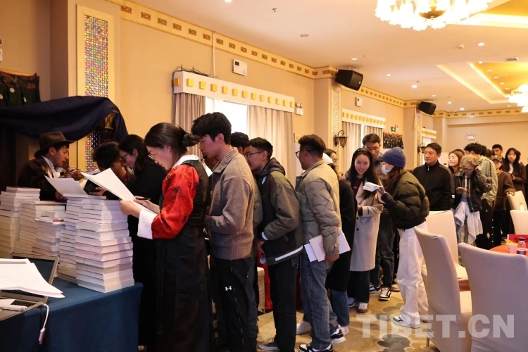 活動最后,由主辦方幫錦嘎瓊讀書會為現(xiàn)場參與人員準備了藏漢英三種語言文字相關書籍,內容涉及歷史、文學、哲學,以及流行暢銷書等?,F(xiàn)場讀書愛好者們個個“眼饞”,你推我擠著往前排隊,生怕錯過自己心儀的書。工作人員一一對照表格,為他們贈送書籍并要求填寫閱讀承諾書。