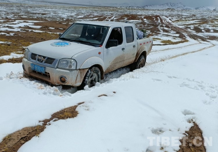 圖為巡護(hù)途中汽車(chē)陷入泥地 圖片由索南米瑪提供