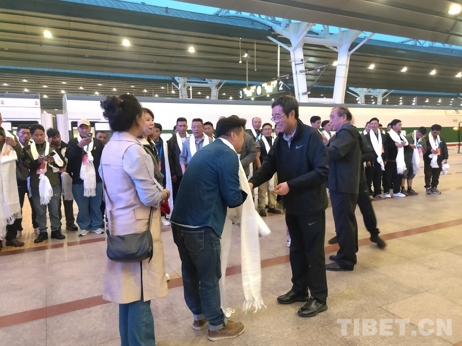 中國(guó)西藏網(wǎng)訊 4月27日晚,西藏野生動(dòng)物保護(hù)員進(jìn)京考察學(xué)習(xí)活動(dòng)圓滿結(jié)束,學(xué)員們?cè)诒本┪髡镜巧翔F路Z21次列車,開啟返回家鄉(xiāng)的路程。北京建藏援藏工作者協(xié)會(huì)、中國(guó)鐵道旅行社集團(tuán)有限公司、中國(guó)西藏網(wǎng)、中華網(wǎng)等參與此次學(xué)習(xí)考察活動(dòng)的組織單位到北京西站送別。