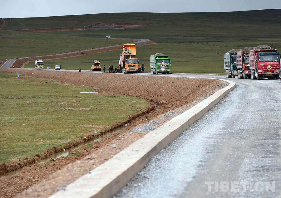 圖為通往雙湖縣正在鋪筑柏油公路(唐召明2017年7月27日攝)