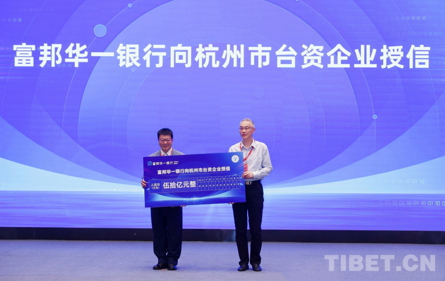 圖為浙江·臺(tái)灣合作周海峽兩岸(杭州)數(shù)字經(jīng)濟(jì)產(chǎn)業(yè)對(duì)接會(huì)上富邦華一銀行向杭州臺(tái)資企業(yè)授信50億元 攝影:劉莉