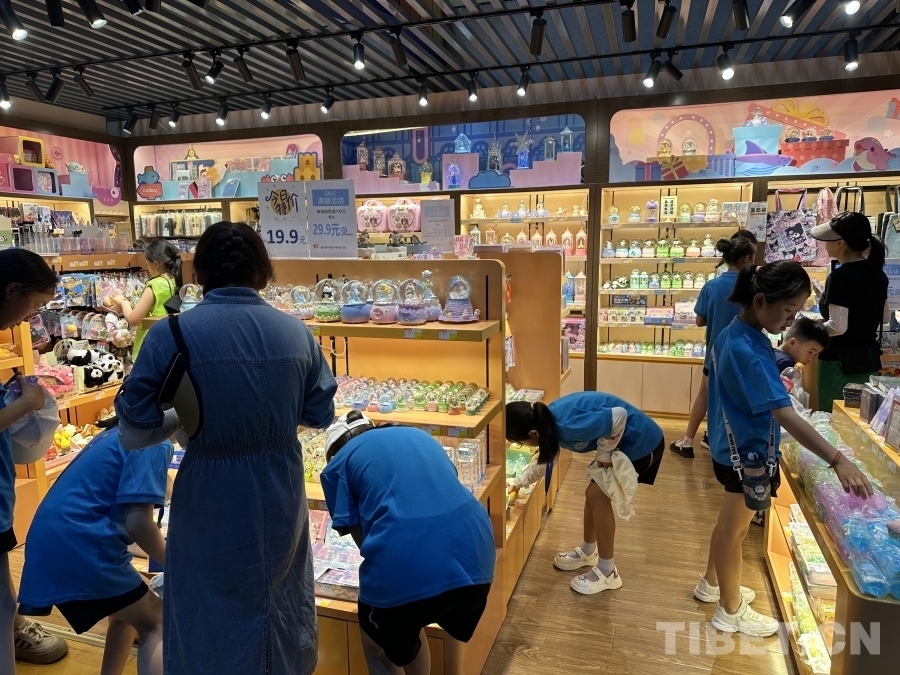 圖為學(xué)生們?cè)谶x購紀(jì)念品 攝影:楊眉笑