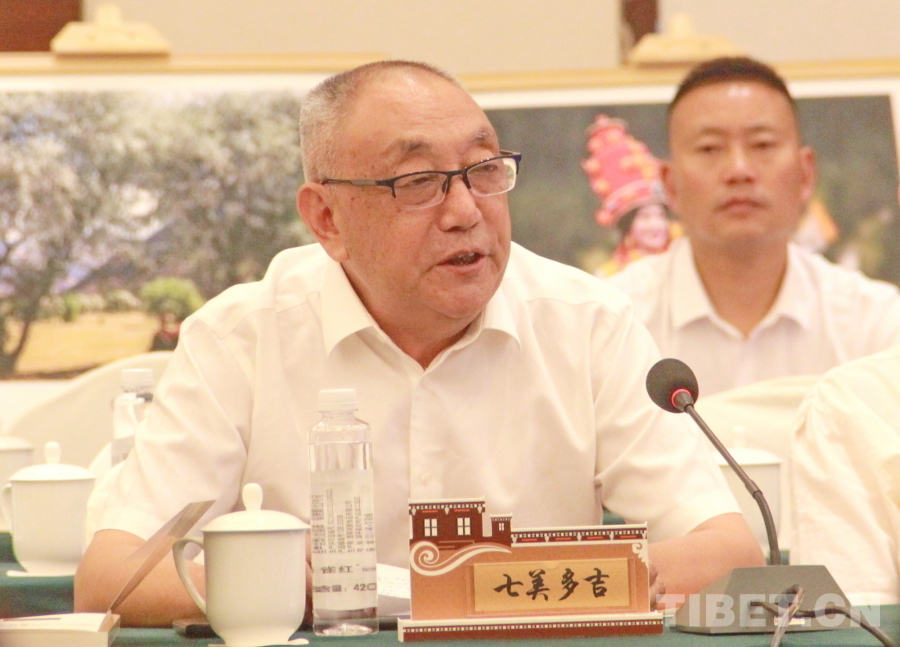 圖為道孚籍學(xué)者七美多吉在“花開道孚 潤道有聲”道孚縣文化傳承發(fā)展座談會(huì)上介紹道孚傳統(tǒng)文化有關(guān)情況 攝影:劉莉