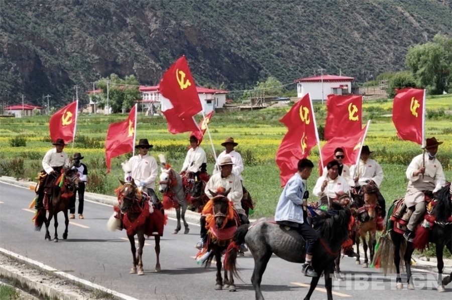 中國西藏網(wǎng)訊 103年風(fēng)雨兼程,103年滄桑巨變。7月1日上午,西藏自治區(qū)昌都市洛隆縣在全縣范圍廣泛開展“七一”系列主題活動,通過騎馬巡游、紅色觀影、講好主題黨課、集體升國旗、重溫入黨誓詞、文藝演出等活動形式,熱烈慶祝中國共產(chǎn)黨成立103周年。