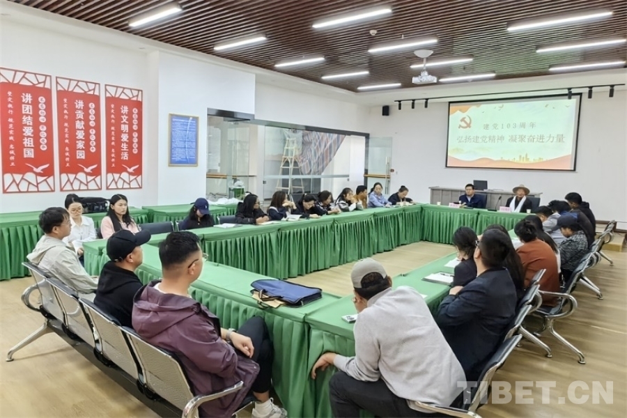 在洛隆縣色底村的卓林夏季牧場,240多名色底村黨支部和駐村工作隊全體黨員黨員面向鮮艷的黨旗,重溫入黨誓詞,齊聲高唱《北京的金山上》,喜迎建黨103周年。