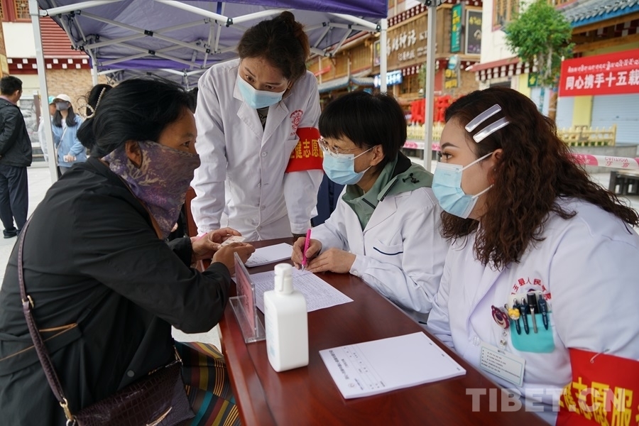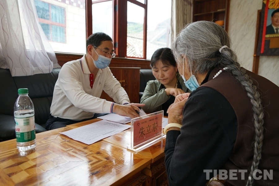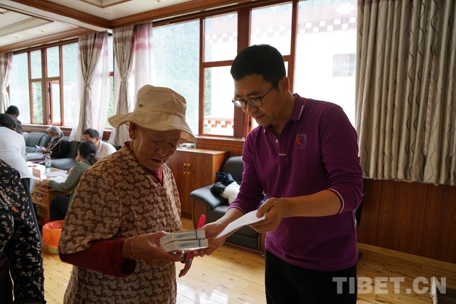 得知有來(lái)自北京的醫(yī)療專家為大家義診,家住白玉縣城的切呷一大早便帶著父母來(lái)到了義診現(xiàn)場(chǎng)。她的母親澤仁拉嘎今年75歲,自述下肢從腰間、腿部到腳尖都會(huì)發(fā)麻、有疼痛感,行走時(shí)腰部會(huì)很累,偶爾還會(huì)因?yàn)榭刂撇缓猛炔炕顒?dòng)而摔倒。北京水利醫(yī)院創(chuàng)傷骨科副主任醫(yī)師王耀輝在經(jīng)過(guò)詳細(xì)問(wèn)診后,為拉嘎阿媽開具了營(yíng)養(yǎng)神經(jīng)的藥品,并建議她進(jìn)一步做胸椎和腰椎方面的檢查。