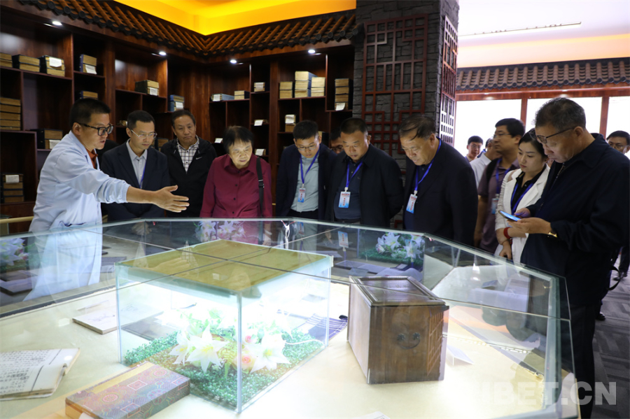 中國(guó)西藏網(wǎng)訊 7月10日,傳承弘揚(yáng)“兩路”精神暨交通變遷與青藏高原現(xiàn)代化研討會(huì)青海分會(huì)在西寧舉辦。會(huì)議期間,“青藏公路之父”慕生忠將軍的女兒慕曉峰、莫河駝場(chǎng)相關(guān)負(fù)責(zé)人以及來(lái)自青海省委黨校、青海省社科院、青海民族大學(xué)、山西大學(xué)等單位的與會(huì)人員來(lái)到青海民族大學(xué)古籍館,參觀了入選《國(guó)家珍貴古籍名錄》的館藏珍貴古籍展覽,并認(rèn)真聆聽(tīng)古籍館相關(guān)負(fù)責(zé)人的詳細(xì)講解,近距離感受了中國(guó)古籍的版本之美、紙張之美、刻印之美。