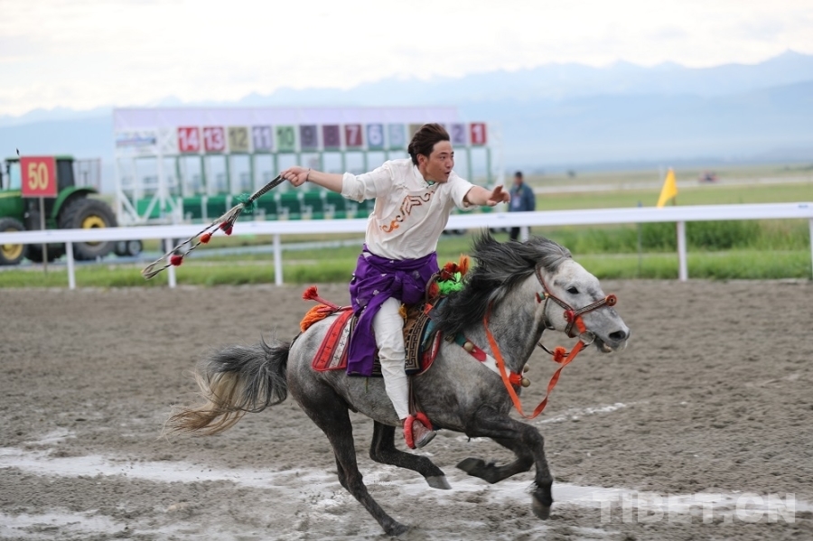 圖為康巴馬術(shù)項目“乘馬拋石” 攝影:達(dá)哇才讓