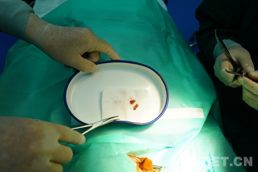 王貴懷、魏希發(fā)兩位專家于下午四點半左右從義診現(xiàn)場抵達白玉縣人民醫(yī)院,會同縣人民醫(yī)院院長李治宏,一起為患兒做了切除手術(shù),異物成功取出,并在隨后安排了病理檢查。手術(shù)完成后,孩子父母為醫(yī)生們獻上哈達,表達自己的感激之情。