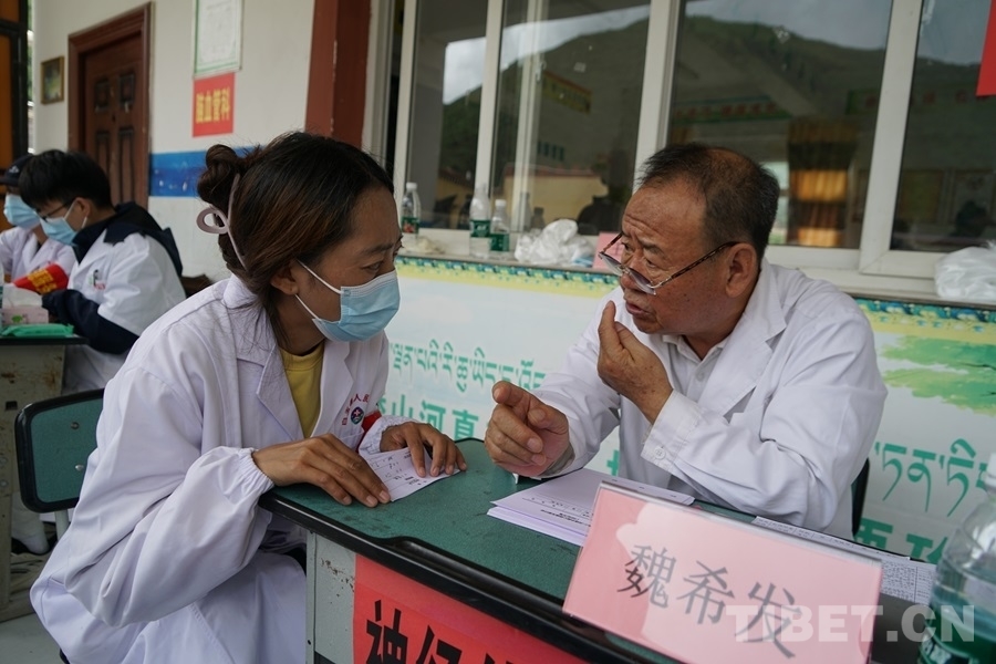在協(xié)助義診過程中,四郎曲珍聽到很多老百姓表示醫(yī)生們不遠千里從北京過來,不僅辛苦為大家問診,還免費送藥,他們心里充滿了欣慰和感激??吹结t(yī)療專家們的盡心竭力和百姓們滿滿的獲得感,她對于這次活動的意義,也有很深的感受?!拔矣X得同心這樣的活動非常好。我們當(dāng)?shù)蒯t(yī)療條件有限,又因為交通不那么方便,老百姓看病很困難。有了這次活動,大家不需要大老遠去找專家,也減輕了路上交通食宿等經(jīng)濟負擔(dān)。不僅如此,老師還可以一對一地指導(dǎo)我們當(dāng)?shù)氐尼t(yī)護人員,幫助我們提升醫(yī)療技能,以后可以更好地為老百姓服務(wù)。”