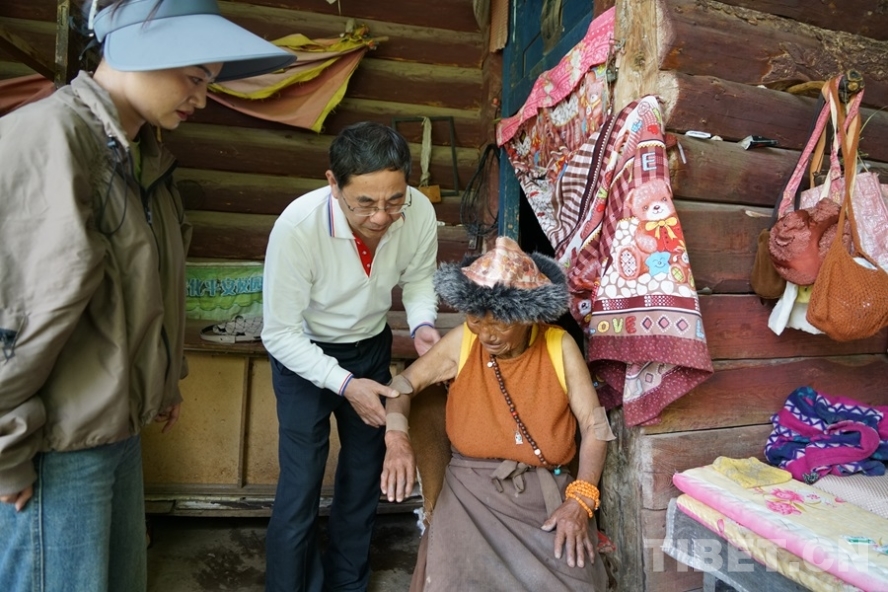 圖為7月7日,北京豐臺醫(yī)院副院長馬延山在白玉縣新時代文明廣場義診點 攝影:周晴晴