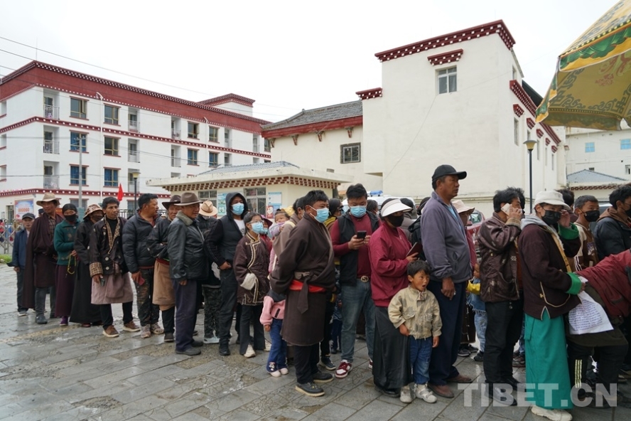 圖為7月9日,群眾在白玉縣昌臺中心衛(wèi)生院義診點排隊等待掛號 攝影:周晴晴
