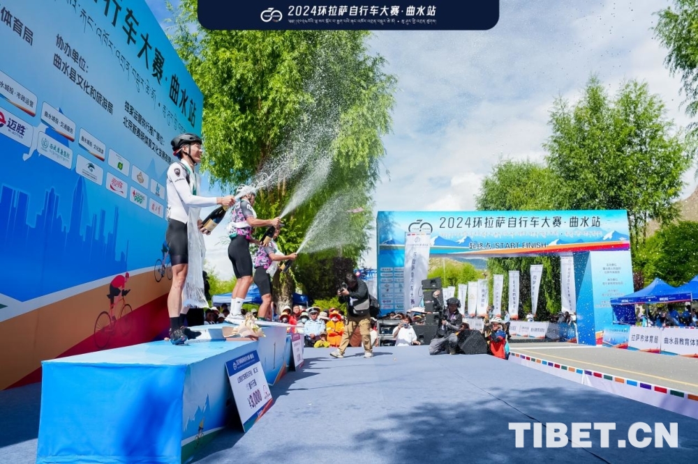 圖為2024環(huán)拉薩自行車大賽·曲水站比賽頒獎環(huán)節(jié)