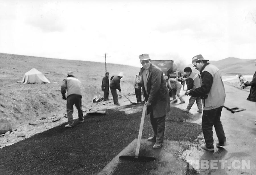 圖為1974年青藏公路改建工程。(西藏自治區(qū)交通運(yùn)輸廳供圖)