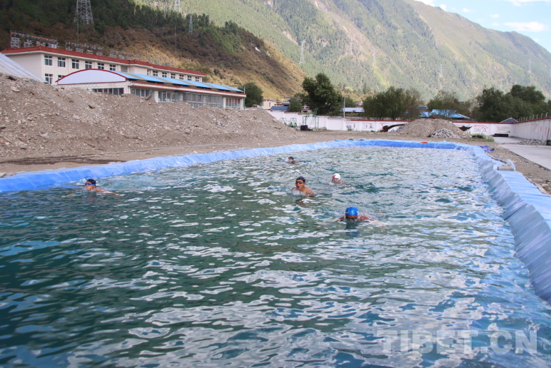 圖為波密縣森林消防中隊(duì)指戰(zhàn)員利用自建簡(jiǎn)易泳池開展游泳訓(xùn)練