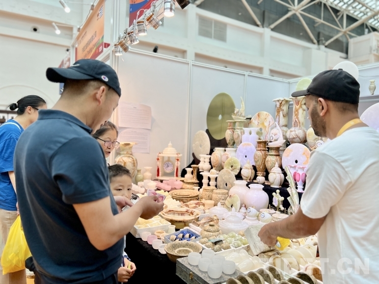 “你好,喜歡哪個(gè)給您介紹!”來自巴基斯坦的Sajid正和前來選購(gòu)的客戶介紹巴基斯坦手工玉產(chǎn)品,展銷點(diǎn)有各式各樣的擺件、茶具、鐘表等,種類繁多,十分精美。他說:“我來拉薩已經(jīng)有三天了,這里氣候舒服,環(huán)境優(yōu)美,我還去過西藏的日喀則,那是個(gè)好地方。聽說雪頓節(jié)是西藏非常盛大的傳統(tǒng)節(jié)日,我很高興借此機(jī)會(huì)帶著巴基斯坦的工藝品來到拉薩,希望拉薩的朋友們喜歡?!?nbsp;