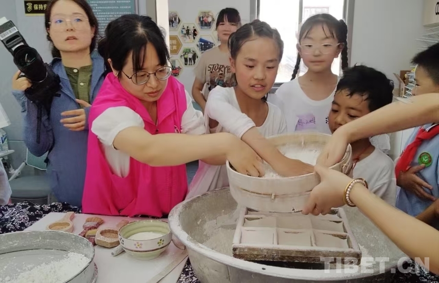 做印糕、纏盤(pán)扣、感受沙地文化……在頭蓬老街,理塘縣青少年研學(xué)團(tuán)和錢塘區(qū)義蓬街道少先隊(duì)員們感受了一場(chǎng)別開(kāi)生面的非遺文化盛宴,印糕傳承人俞師傅展示了印糕的制作過(guò)程,遠(yuǎn)道而來(lái)的理塘“伢兒”還動(dòng)手自己做印糕,纏盤(pán)扣。“看著簡(jiǎn)單,自己做還是很有難度,但是做成功了又很有成就感!”尕瑪拉姆表示。