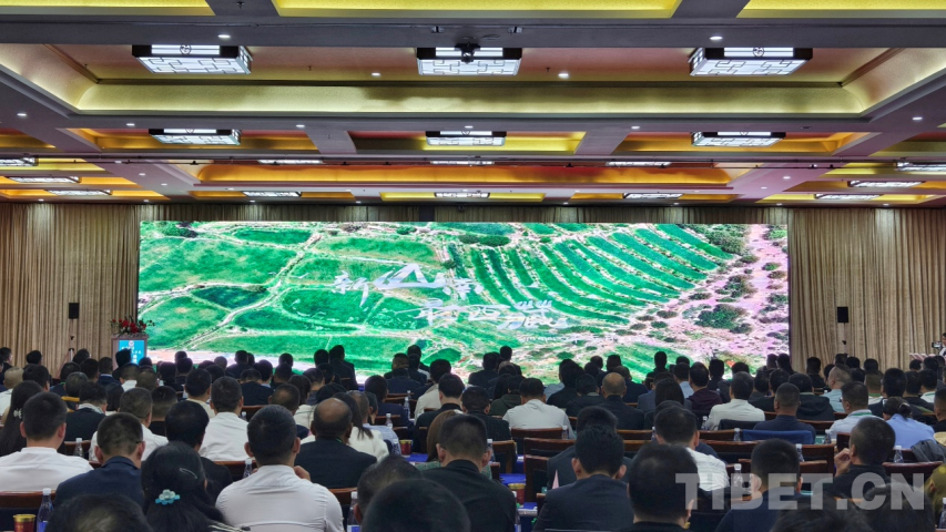 圖為嘉賓觀看山南市招商引資宣傳片 攝影:陳卓然