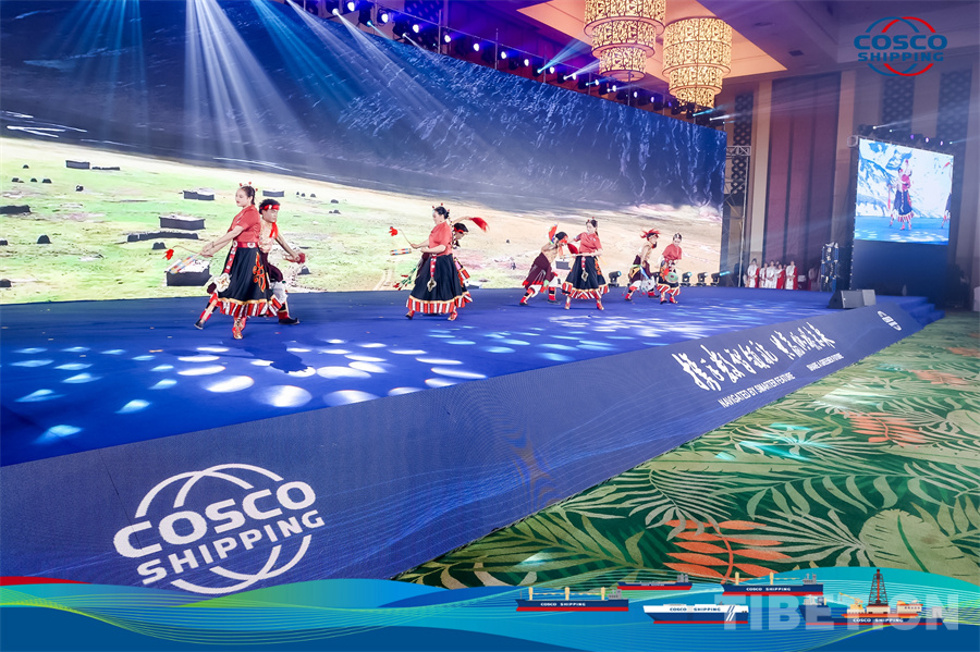 圖為洛隆縣藝術團在中遠海運特運2024全球合作伙伴大會上精彩亮相