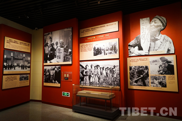 “西藏百萬農(nóng)奴解放紀念館日喀則分館”面積1165平方米,在西藏百萬農(nóng)奴解放紀念館展陳腳本的基礎上,適當融入了發(fā)生在日喀則大地上的民主改革等重大歷史事件,特別是融入了黨的十八大以來日喀則發(fā)展成就等內(nèi)容。展廳采用幻影成像技術(shù),生動再現(xiàn)“桑登分得土地”“桑登乞討圖”等新舊對比場景,全面集中反映了中國共產(chǎn)黨帶領(lǐng)西藏各族人民進行偉大民主改革,百萬農(nóng)奴翻身獲得解放的偉大歷史變革。