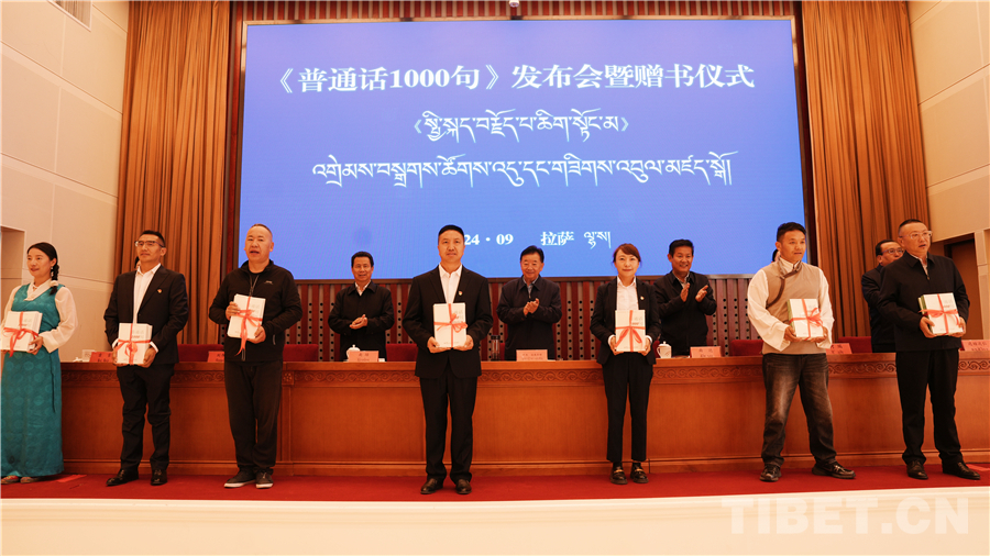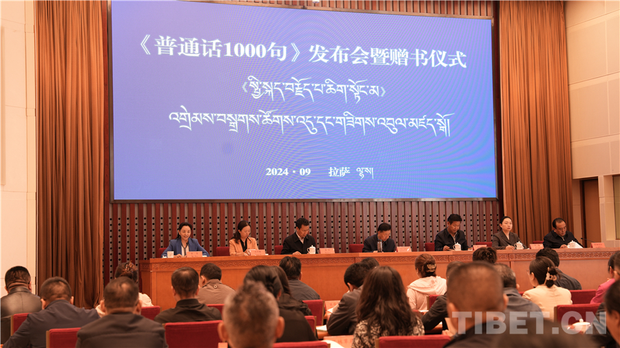 中國西藏網(wǎng)訊 為進(jìn)一步助力國家通用語言文字推廣普及,鑄牢中華民族共同體意識(shí)。9月20日,西藏自治區(qū)藏語委辦(編譯局)在拉薩舉行了《普通話1000句》漢藏對照版新書發(fā)布會(huì)暨贈(zèng)書儀式。西藏自治區(qū)政府副主席、自治區(qū)藏語委副主任甲熱·洛桑丹增出席會(huì)議,西藏自治區(qū)藏語委辦(編譯局)黨組副書記、主任(局長)達(dá)娃次仁作新書出版介紹,會(huì)上宣讀了教育部語文出版社發(fā)來的賀信,并向與會(huì)代表贈(zèng)書。