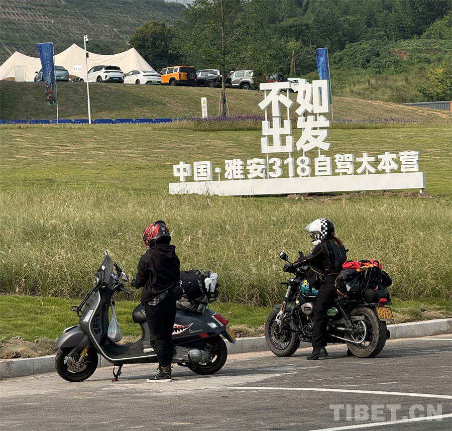 雅安318自駕大本營門口,在一塊“不如出發(fā)”的大型標(biāo)識(shí)牌面前,來自重慶和四川成都的兩位騎行女孩正整裝待發(fā)?!皣鴳c長假馬上來了,我們就想做一件平時(shí)難做的事情,騎行318直達(dá)拉薩!拉薩是另一個(gè)夢(mèng)開始的地方,我們想到拉薩見一見朋友,再嘗一下非常好喝的酸奶。”整理完之后,兩位騎行女孩喊出了“我們拉薩見”的告別口號(hào),戴上頭盔,伴著機(jī)車的轟鳴聲,騎行走上了318的遠(yuǎn)方。(中國西藏網(wǎng) 記者/王妍丹 蘇洋)