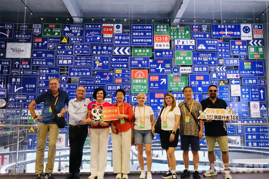 圖為國際旅行商代表團(tuán)在318微型博物館內(nèi)參觀打卡