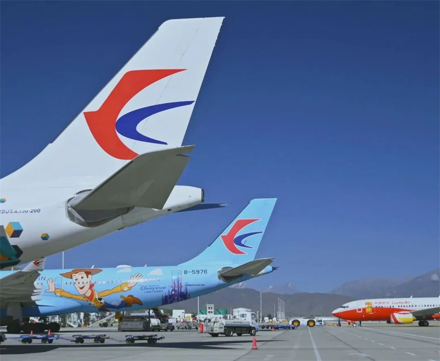 圖為拉薩貢嘎國際機場機坪保障現場
