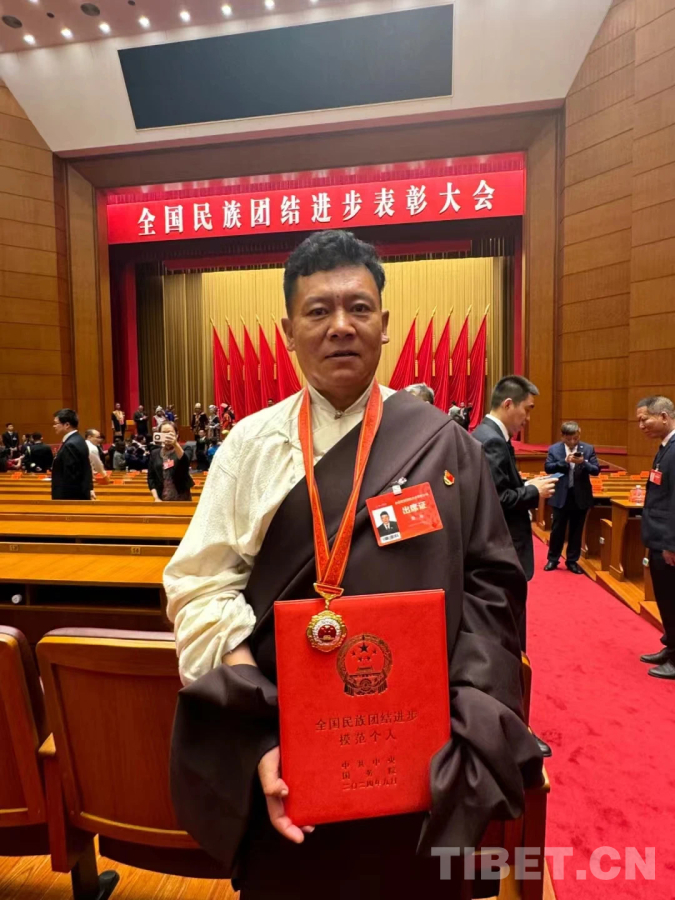 圖為全國(guó)民族團(tuán)結(jié)進(jìn)步模范個(gè)人獲得者桑珠