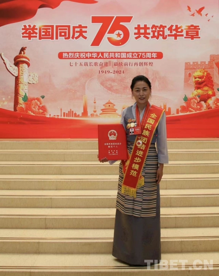中國(guó)西藏網(wǎng)訊 白瑪央珍曾先后獲得過“第十三屆全國(guó)職工職業(yè)道德建設(shè)先進(jìn)個(gè)人”“自治區(qū)勞動(dòng)模范”“自治區(qū)三八紅旗手標(biāo)兵”“自治區(qū)民族團(tuán)結(jié)進(jìn)步模范個(gè)人”等諸多榮譽(yù)。這一次,她榮獲“全國(guó)民族團(tuán)結(jié)進(jìn)步模范個(gè)人”并來到北京參加全國(guó)民族團(tuán)結(jié)進(jìn)步表彰大會(huì),更讓她欣喜萬分。她激動(dòng)地對(duì)記者說:“在新中國(guó)75歲生日前夕,作為一名雪域高原的藏族兒女獲得這樣崇高榮譽(yù),特別是親耳聆聽了習(xí)近平總書記在表彰會(huì)上的重要講話,我感到非常榮幸、非常激動(dòng)。這份榮譽(yù)將激勵(lì)我在未來更加努力學(xué)習(xí)工作,把民族團(tuán)結(jié)進(jìn)步的精神和中華民族共同體意識(shí)永遠(yuǎn)傳承下去。”