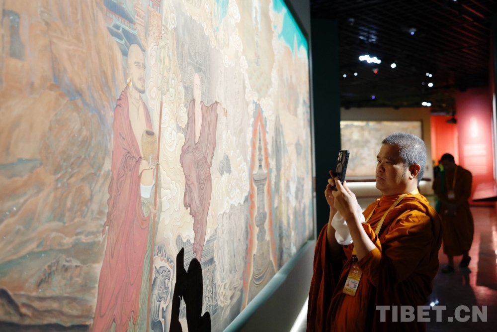圖為與會者參觀“同愿同行——中國佛教傳承發(fā)展主題創(chuàng)作展”