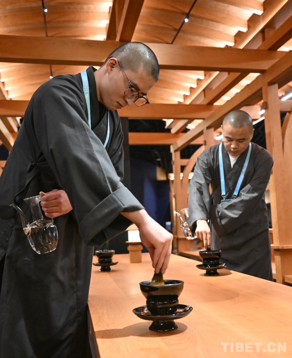 圖為與會者在“和合共生——世界佛教文化藝術(shù)展”上體驗(yàn)宋式點(diǎn)茶