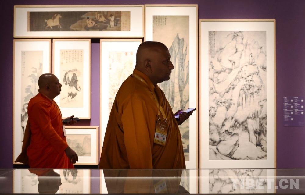 圖為與會者參觀“和合共生——世界佛教文化藝術(shù)展”