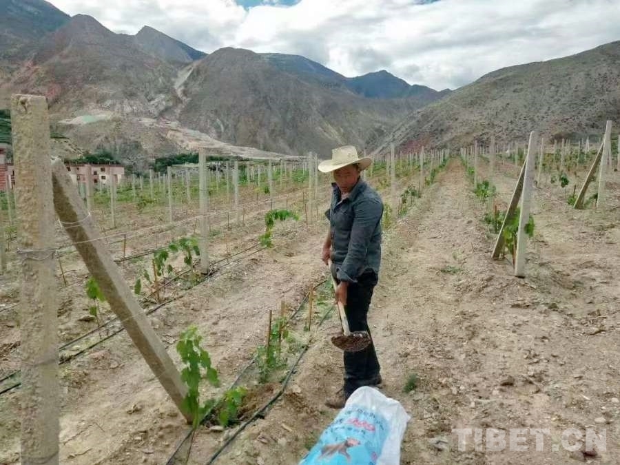 在風(fēng)景如畫的八宿縣林卡鄉(xiāng)孜嘎村,有一片占地面積200畝的葡萄種植基地,也是昌都市海拔最高的葡萄種植基地。2016年,八宿縣計劃建立葡萄種植基地,來自芒康縣納西民族鄉(xiāng)的次成江措在項目中標(biāo)后成為該基地的負責(zé)人。在次成江措的家鄉(xiāng)芒康,種植葡萄已經(jīng)有200多年的歷史。從小耳濡目染,使他成為遠近聞名的葡萄種植專家。剛接到這個項目時,由于對八宿縣地理環(huán)境不甚了解,次成江措內(nèi)心并沒有十足的把握。隨后,他從家鄉(xiāng)帶來優(yōu)質(zhì)葡萄品種“黑珍珠”,驚喜地發(fā)現(xiàn)得益于八宿縣海拔較高、紫外線充足、降雨量較少的優(yōu)勢條件,“黑珍珠”的生長情況超出了他的預(yù)期,甚至不需要使用農(nóng)藥?! ?/p>