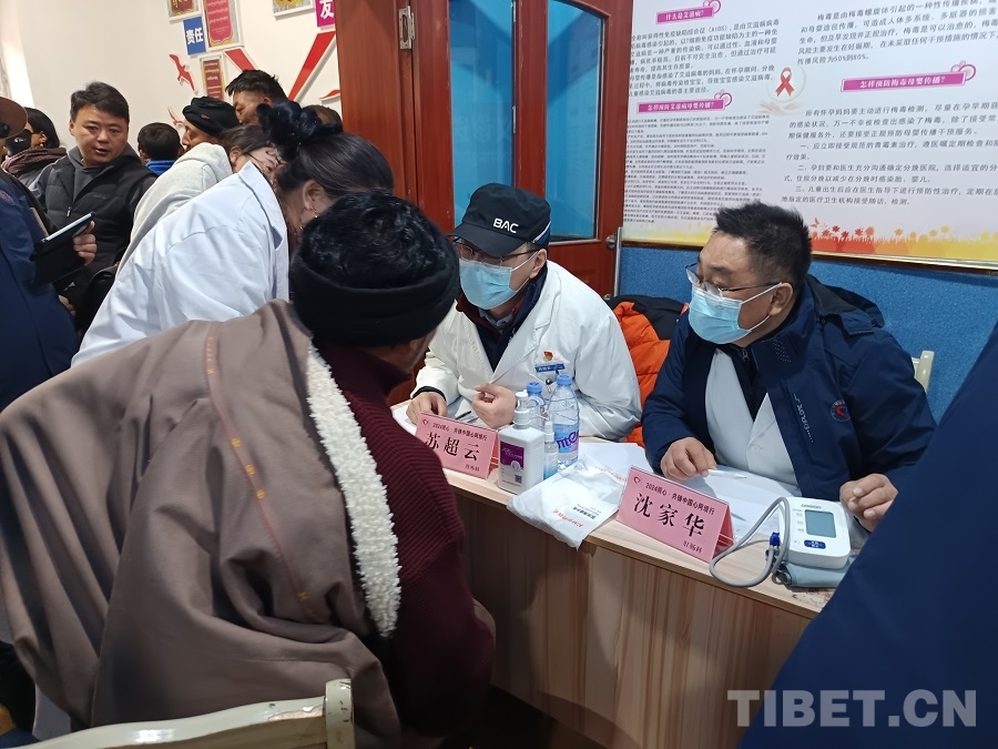 圖為航天總醫(yī)院肛腸科外科專家沈家華、普外科專家蘇超云為當(dāng)?shù)厝罕娍丛\ 攝影:賈春玲