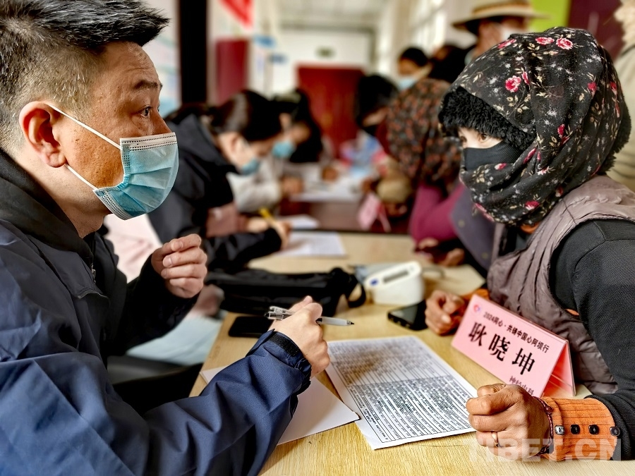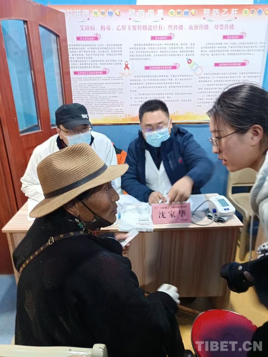 圖為航天總醫(yī)院內(nèi)分泌科專家沈巾然為當?shù)厝罕娍丛\ 攝影:賈春玲