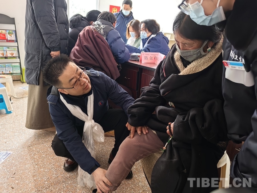 圖為中國康復(fù)研究中心骨科專家唐鵬為當?shù)厝罕娍丛\ 攝影:賈春玲