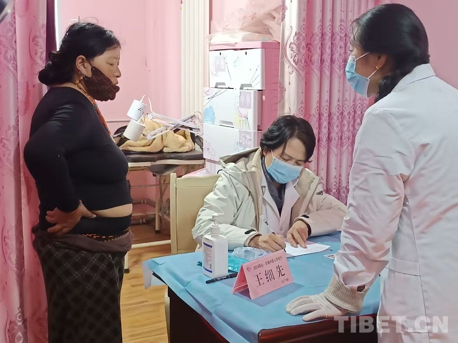 圖為航天總醫(yī)院婦產(chǎn)科專家王細先為當?shù)厝罕娍丛\ 攝影:賈春玲